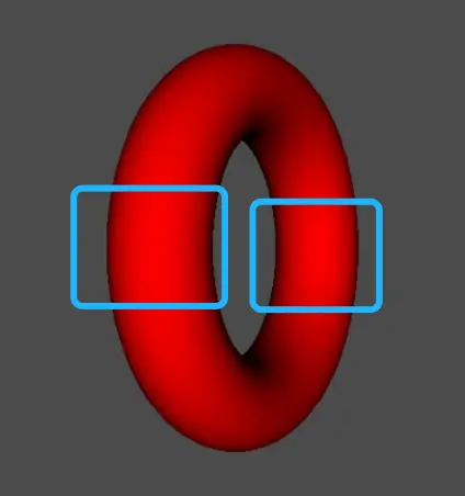 当openGL显示立体图形时候,例如甜甜圈,有多个图层时候,需要开启正背面剔除功能,当转到下面这个角度时候,方框内的都是正面