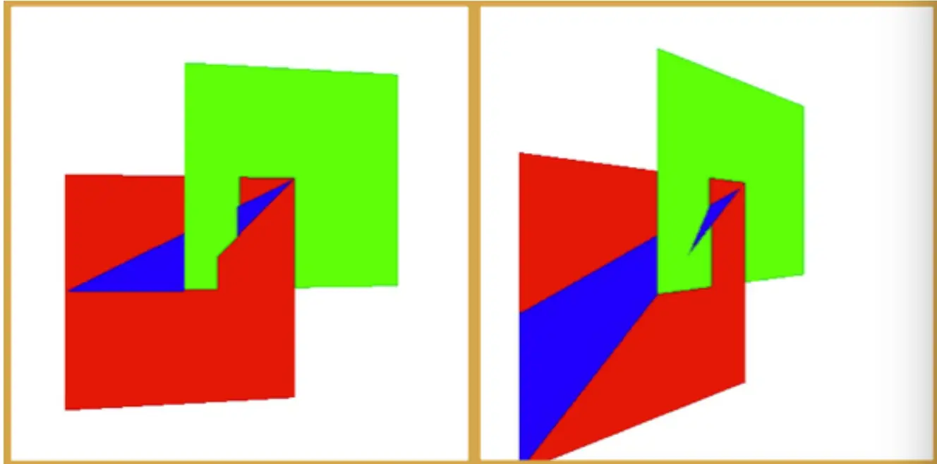 但是到下面角度时候,会导致openGL无法区分哪一块是正面,哪一块是背面 例如