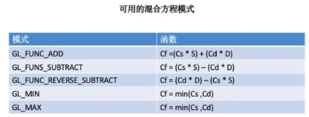 glBlendFunc(GLenum S,GLenum D)