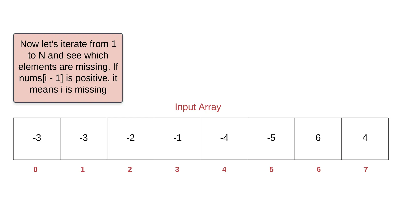 - 现在我们知道了数组中存在那些数字,只需从 1⋯N 范围中找到缺失的数字。