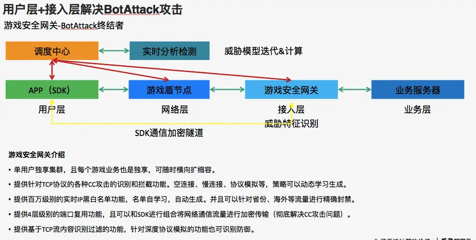 接入层(游戏安全网关):还记得CC攻击的影响吗?接入层就是为了应对它准备的。在这一层,只处理用户行为,不处理业务。