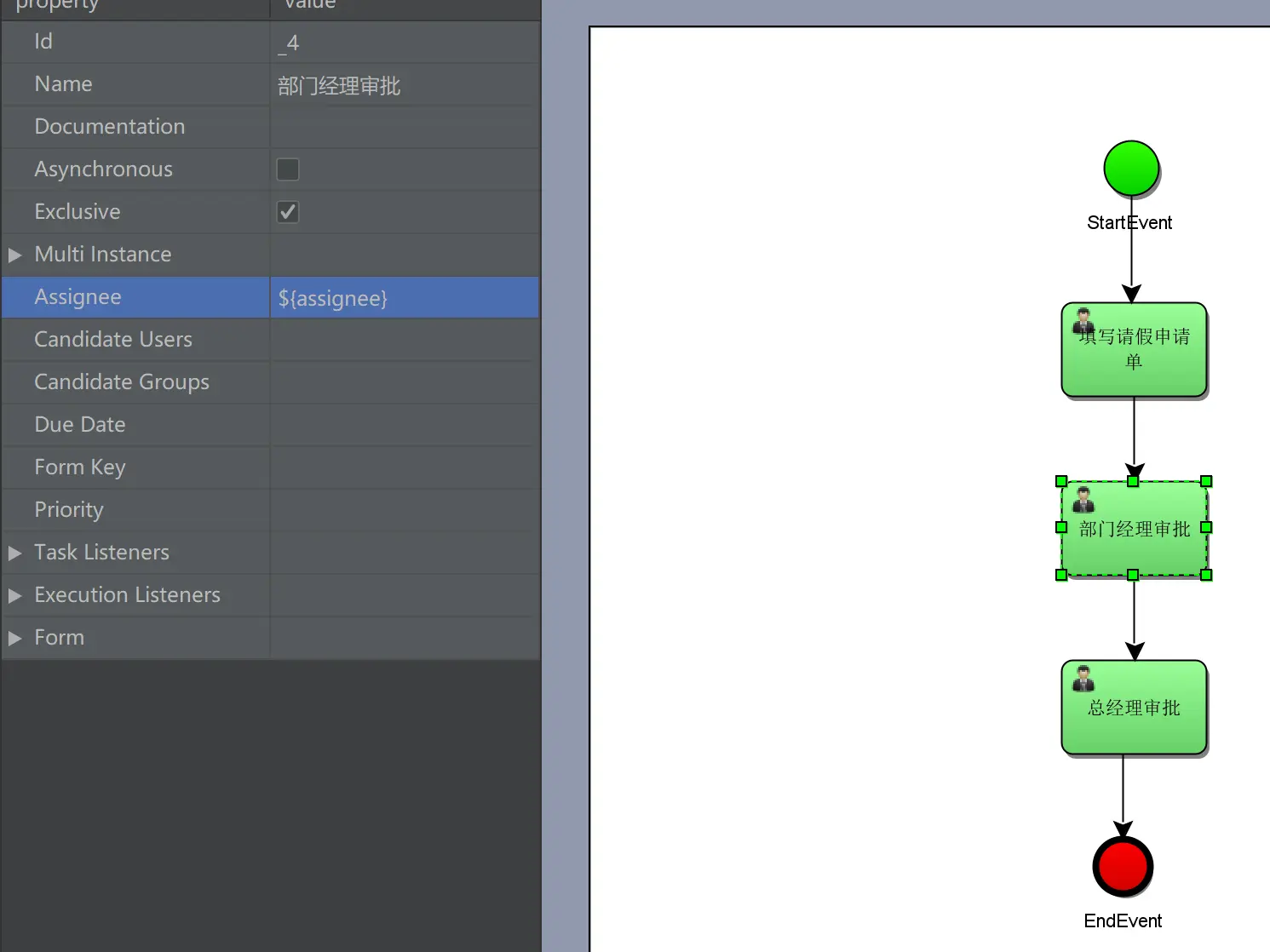 员工类型:通过流程变量userType来表示,如果等于1表示普通员工,如果等于2表示领导