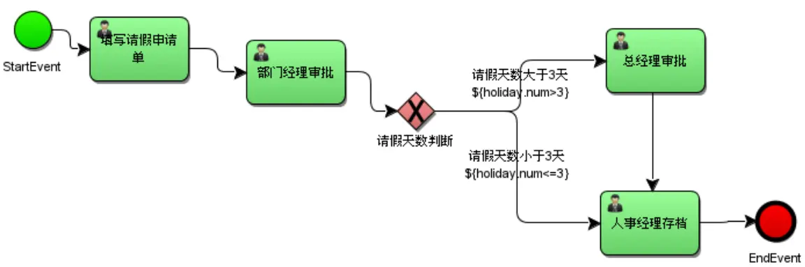 比如在请假流程流转时如果请假天数大于3天则由总经理审核,否则由人事直接审核,请假天数就可以设置为流程变量,在流程流转时使用。