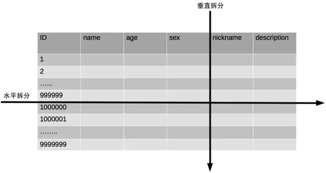 单表数据拆分有两种方式:垂直分表和水平分表。示意图如下: