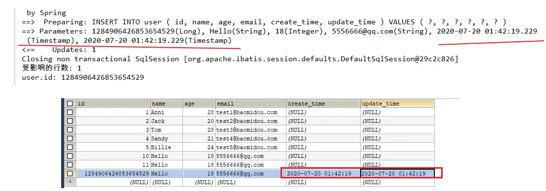 我们没有在建表时选择主键生成策略,也没有在插入时传入id参数,那么主键哪来的呢?