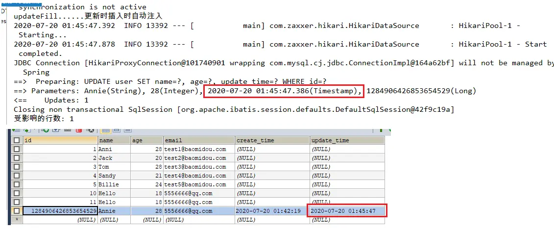 最终的sql会合并 user.setAge(),以及 userUpdateWrapper.set() 和 setSql() 中 的字段
