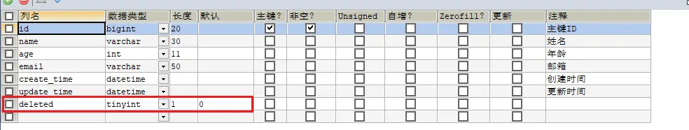 约定成俗的规定:默认情况下也是逻辑列:没删是0,删了是1