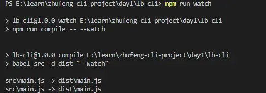 7、还可以加一个命令watch,可以监控src文件夹,一有改变可以产出新的文件