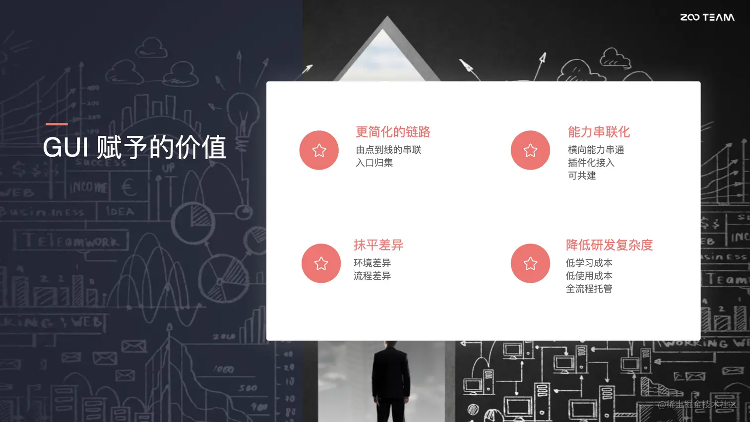 GUI 赋予了我们哪些价值呢?首先它可以将分散的任务点进行一个串联整合,提供了一个更简化的操作链路,同时它还可以抹平不同同学使用时一些流程间的差异,以及流程所依赖的一些环境的差异,并且基于 GUI 的一个整合能力,我们还可以将其他能力进行一个横向的串通,并且通过 GUI 来设计插件化的机制,还可以创造一个可共建的生态。同时基于 GUI 的图形界面操作低学习成本,以及它对整个流程的托管,也是可以大大的降低团队同学的研发复杂度。