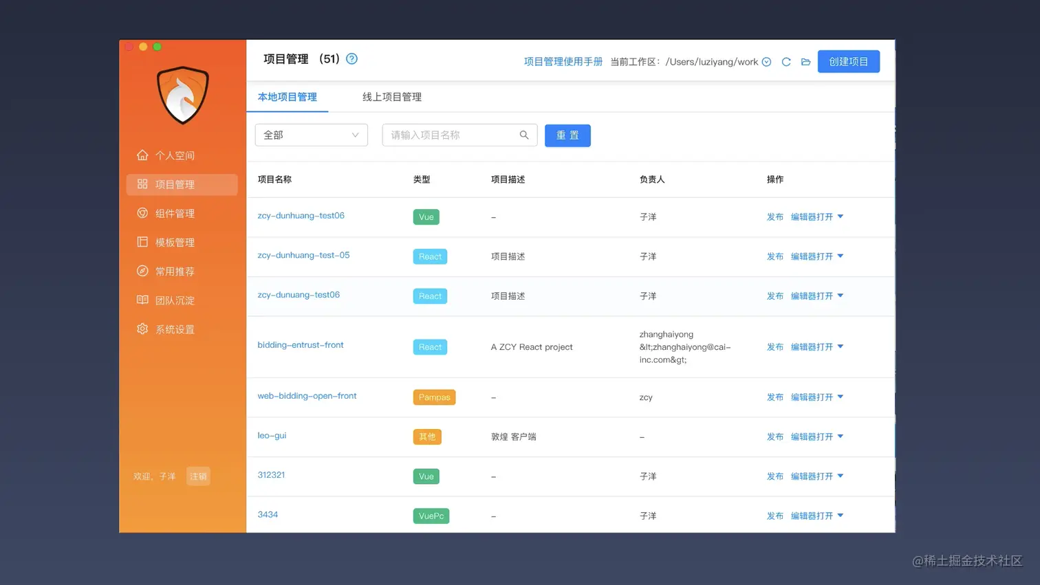 左边是一个接口管理的桌面端工具,为开发过程提供辅助的功能。另外一个 switchhosts,它是一个本地环境管理工具。大家可以看到基于 Electron 开发的桌面端的应用,在我们整个的研发流程中,从我们的本地环境管理、流程管理,开发辅助以及研发编辑阶段都有涉及。工程化管理平台是对整个研发生命周期流程上的串通,但是在实际的编码阶段,其实还是有一个脱离的环节,依然需要依赖 IDE 的能力。基于 Electron 在 IDE 方向的一些可能性,我们未来的一个方向也是,希望将整个 IDE 的本地编码环境与我们的整个研发流程进行一个串通,真正意义上的实现整个研发链路的串通以及效率升级。