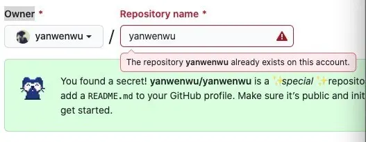 仓库名称必须和你的用户名相同,需要 init Readme, 创建之后就可以使用编辑 README 来 DIY。