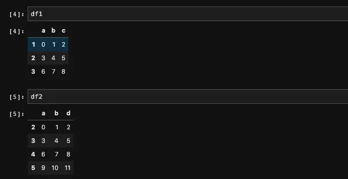 df2 = pd.DataFrame(np.arange(12).reshape((4, 3)), columns=list('abd'), index=['2', '3', '4', '5'])