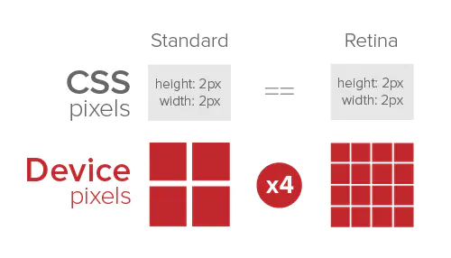 比如iPhone 5的Retina屏幕,设备像素数为 640 x 1136px,而CSS逻辑像素数为320 x 568px,使用2px x 2px的 device pixel 代表 1px x 1px 的 css pixel。