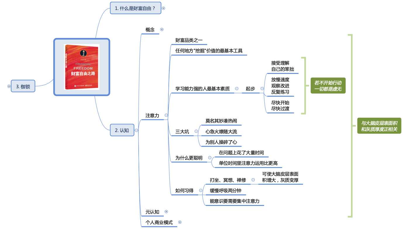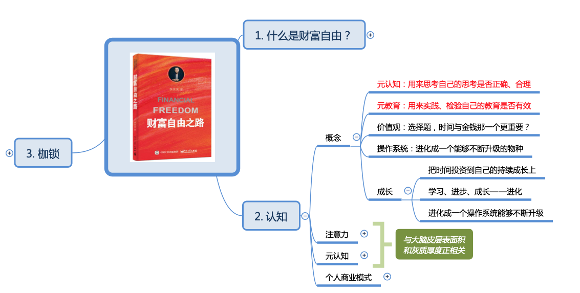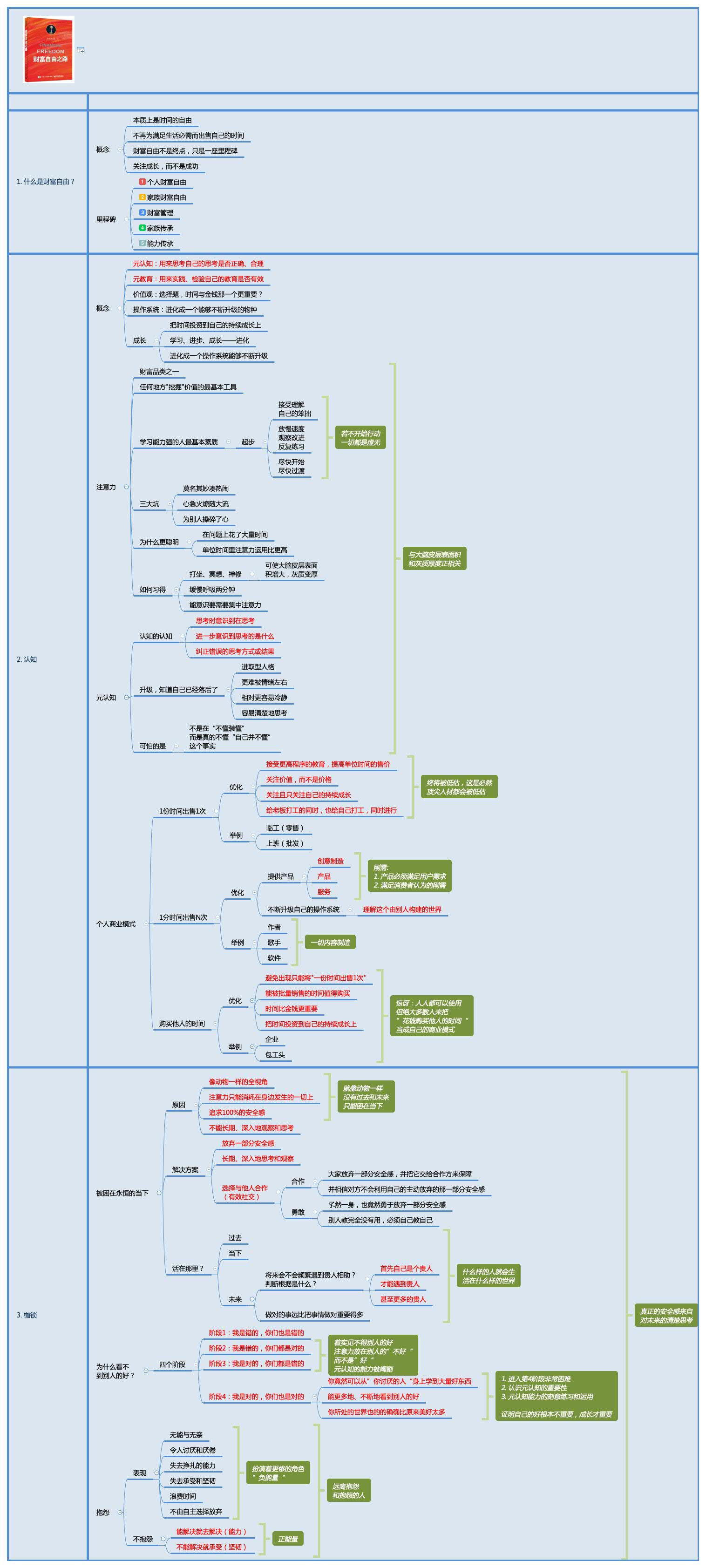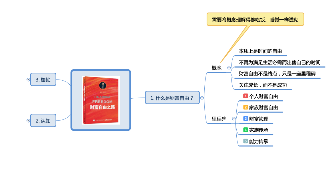 我是按自己的理解整理的思维导图,为了方便大家我将各部分分别截图,首先我们看来看什么是财富自由?