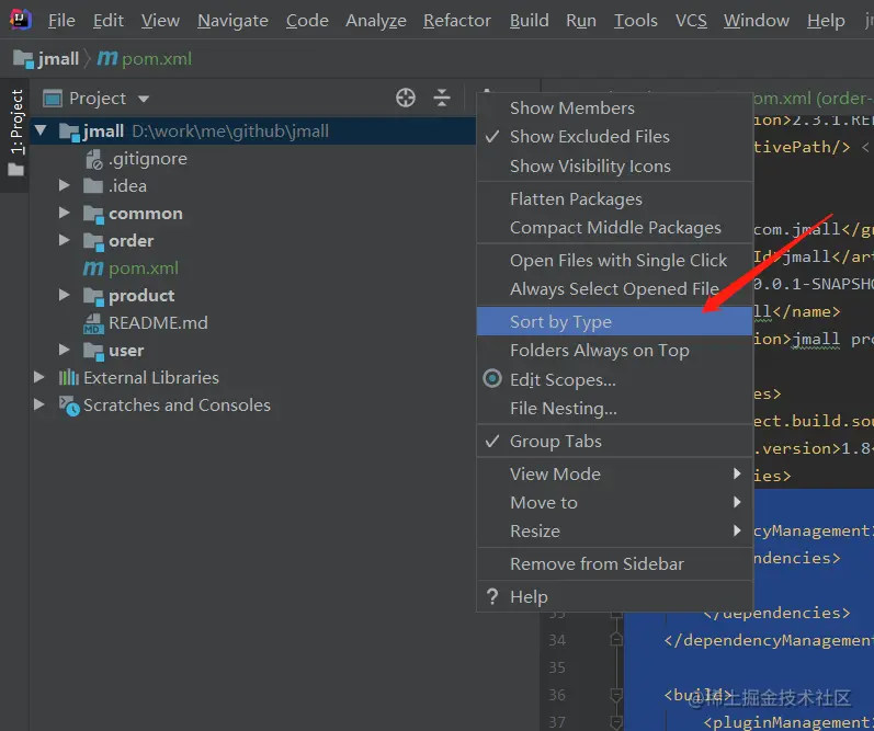 点击它后就能让项目目录以单个目录的形式呈现,不会聚合如下