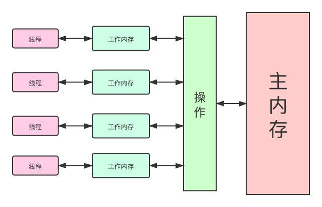 每个线程操作数据的时候会把数据从主内存读取到自己的工作内存,如果他操作了数据并且写会了,他其他已经读取的线程的变量副本就会失效了,需要都数据进行操作又要再次去主内存中读取了。