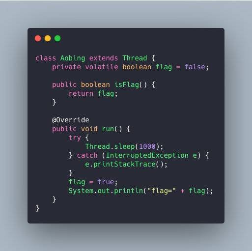 你会发现,永远都不会输出有点东西这一段代码,按道理线程改了flag变量,主线程也能访问到的呀?