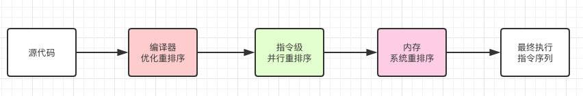 为了提高性能,编译器和处理器常常会对既定的代码执行顺序进行指令重排序。