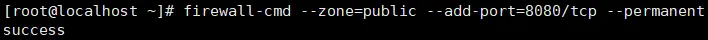 [root@localhost]# firewall-cmd --zone=public --add-port=8080/tcp --permanent