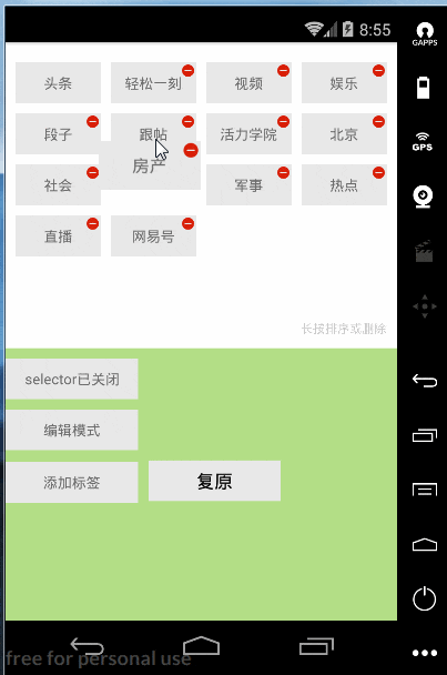 HandyGridView是一个高仿支付宝,网易新闻的高性能的标签可拖动排序的GridView。