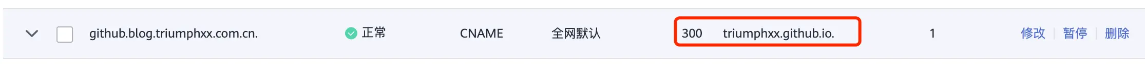 ❝说明: echo 'github.blog.triumphxx.com.cn' > CNAME,这句脚本的意思是, 绑定你的私有域名,在你个人的域名管理下,解析域名到