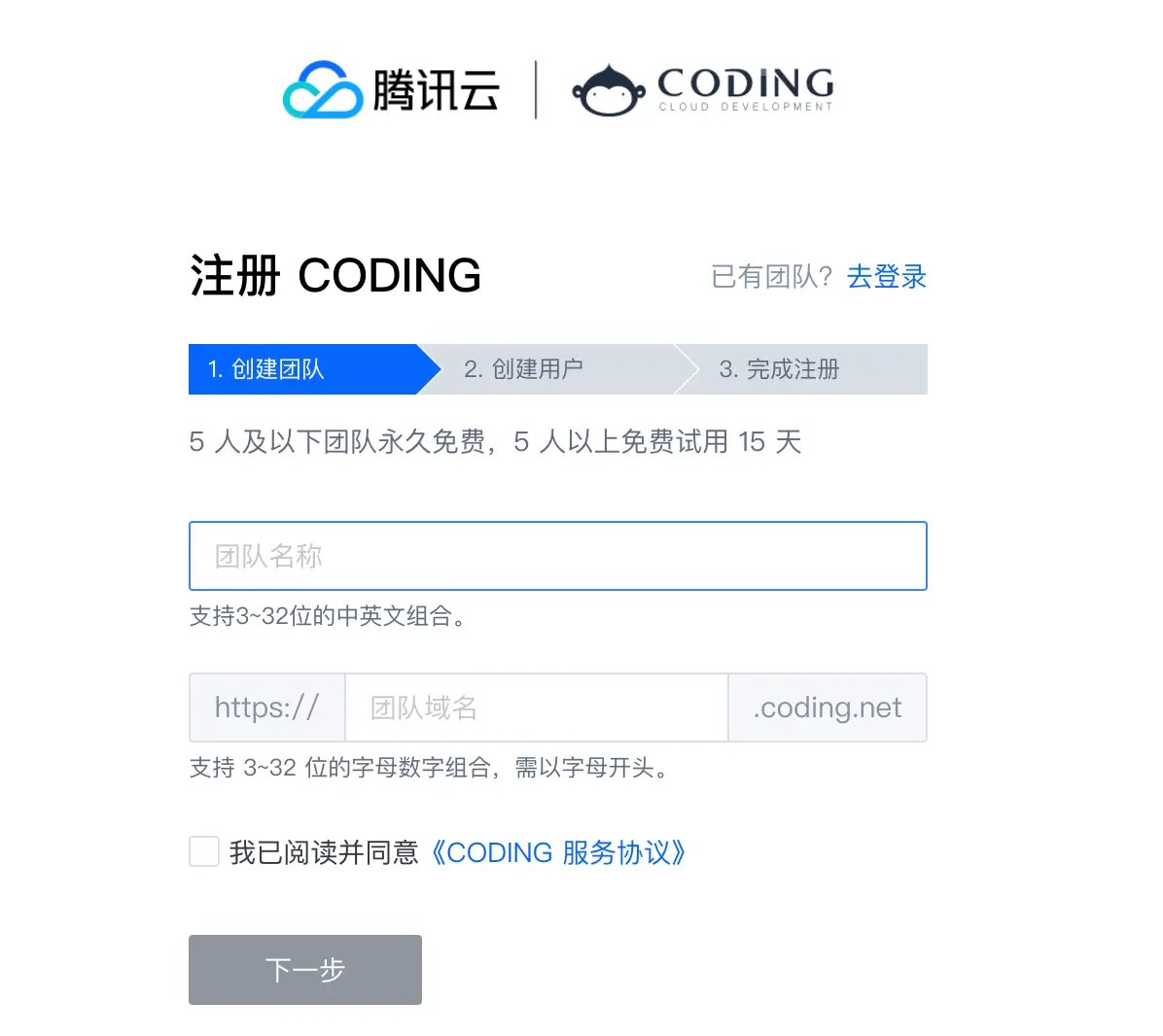 coding网站地址自行进行注册,这里就不多赘述。