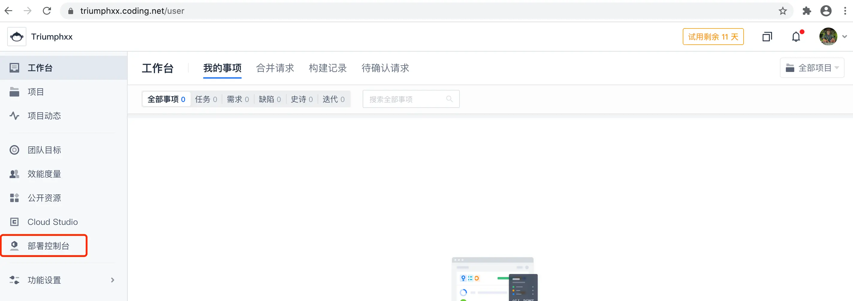 - 创建完项目后,到你的主页,找到