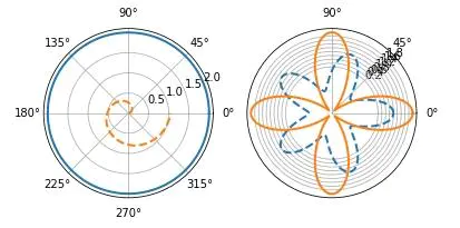 ax2.plot(theta, np.cos(5 * theta), linestyle='--', lw=2)