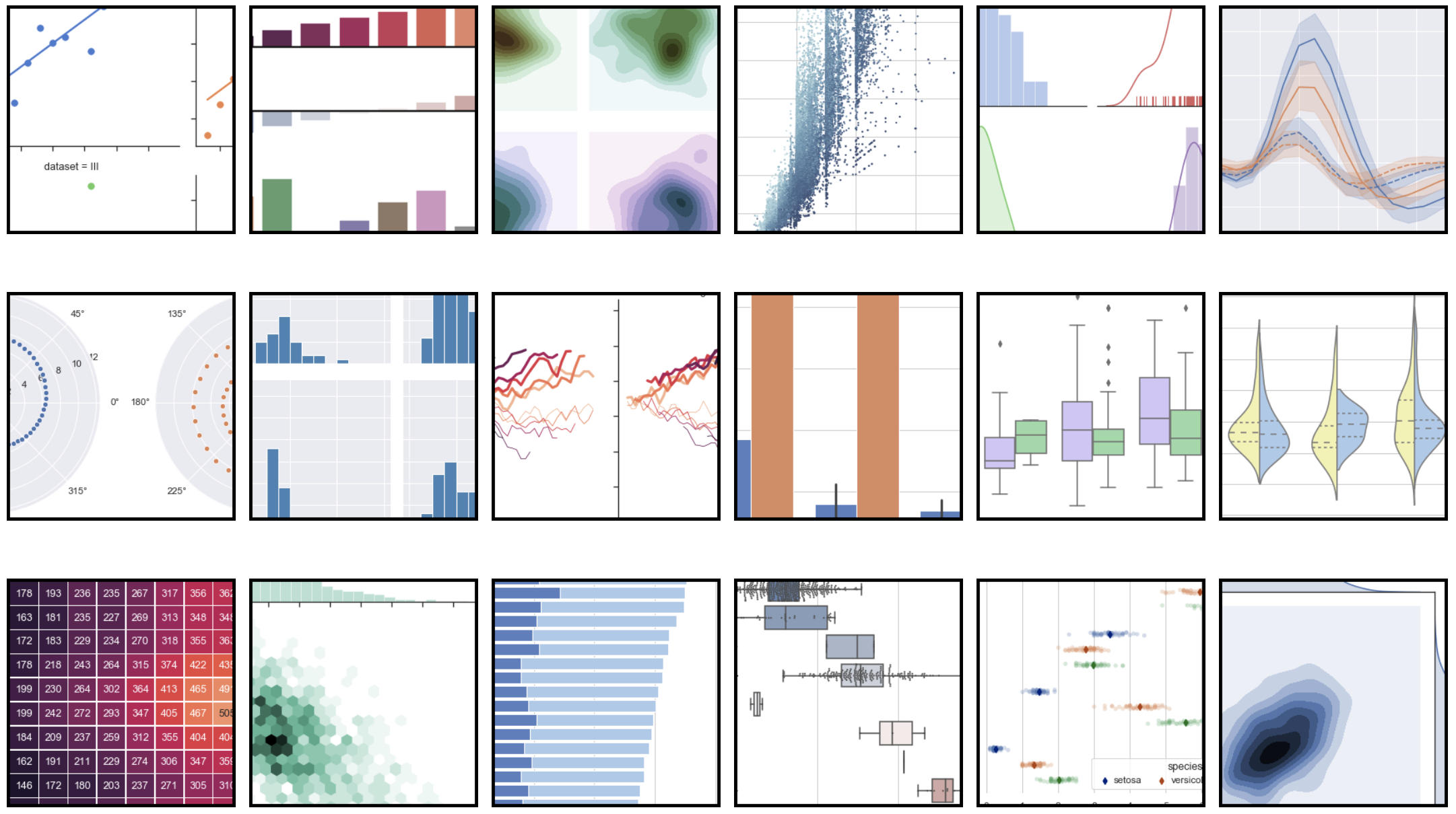 Seaborn 提供了一个高层的简便的 API,可以和 Matplotlib 结合使用,大大简化了 Matplotlib 的配置操作。