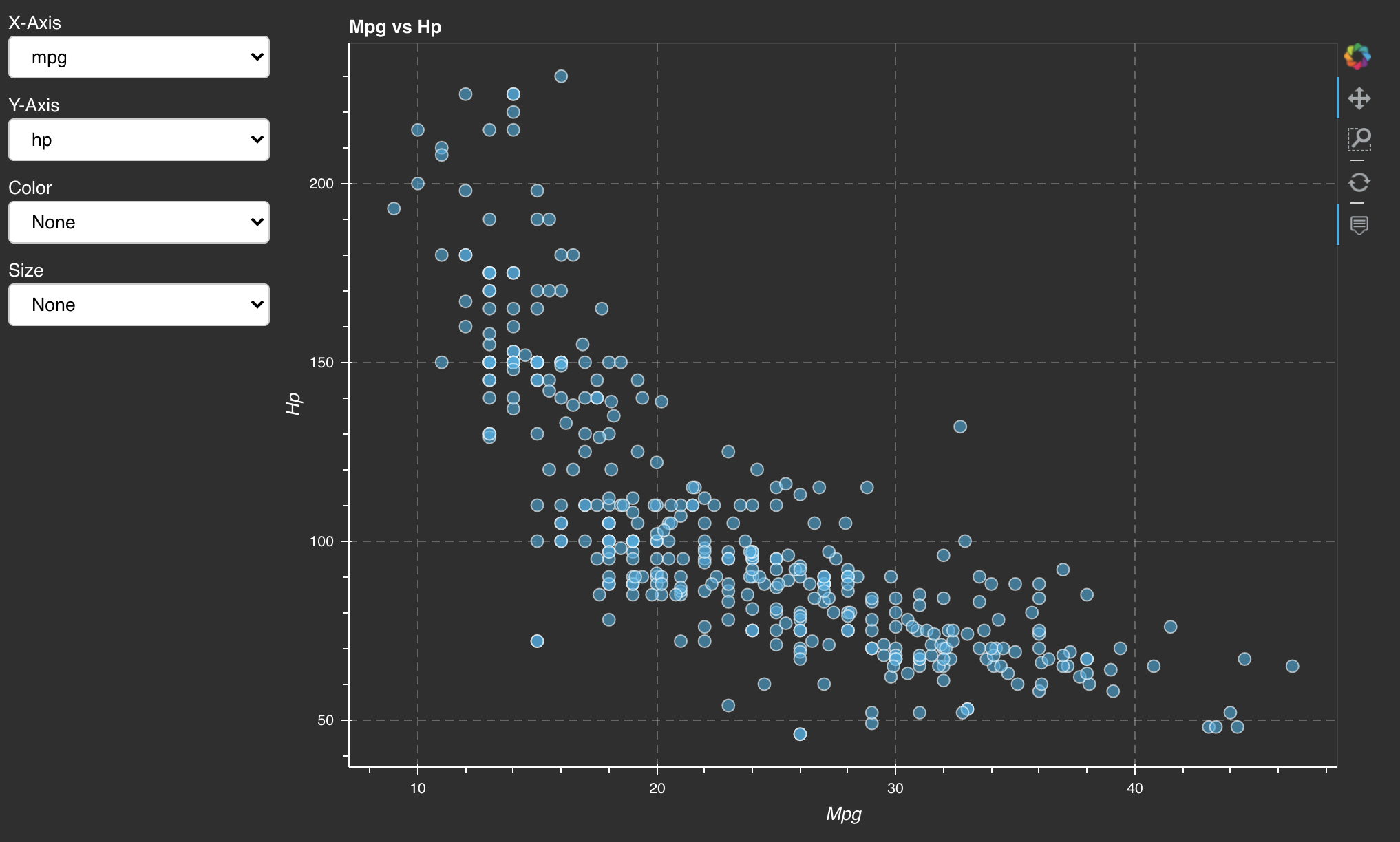 size = Select(title='Size', value='None', options=['None'] + continuous)