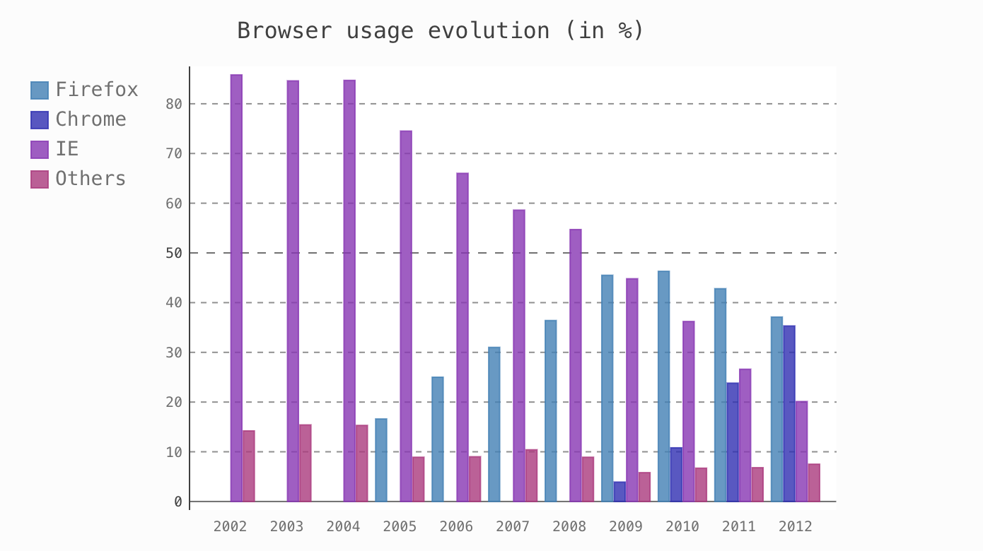 line_chart.title = 'Browser usage evolution (in %)'