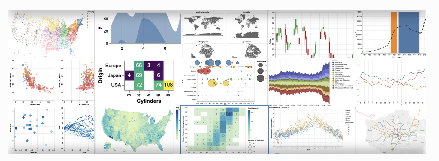 Altair 的使用也非常简单,且可以绘制强大的交互式图表,不过需要学习 Vega 或 Vega-lite 绘图语法。