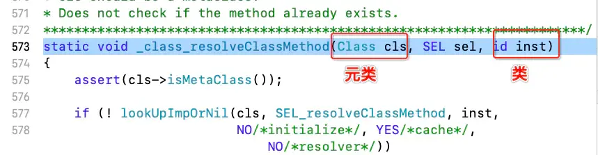 static void _class_resolveClassMethod(Class cls, SEL sel, id inst)