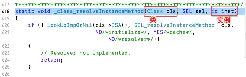 if (! lookUpImpOrNil(cls->ISA(), SEL_resolveInstanceMethod, cls,