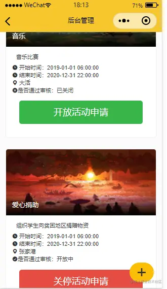 小程序-社团活动信息平台(cover 董方)项目概览(文章最后附更多美图)