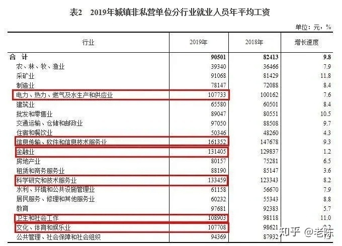 给大伙看一张2019城镇非私营单位各行业平均年薪资调查表