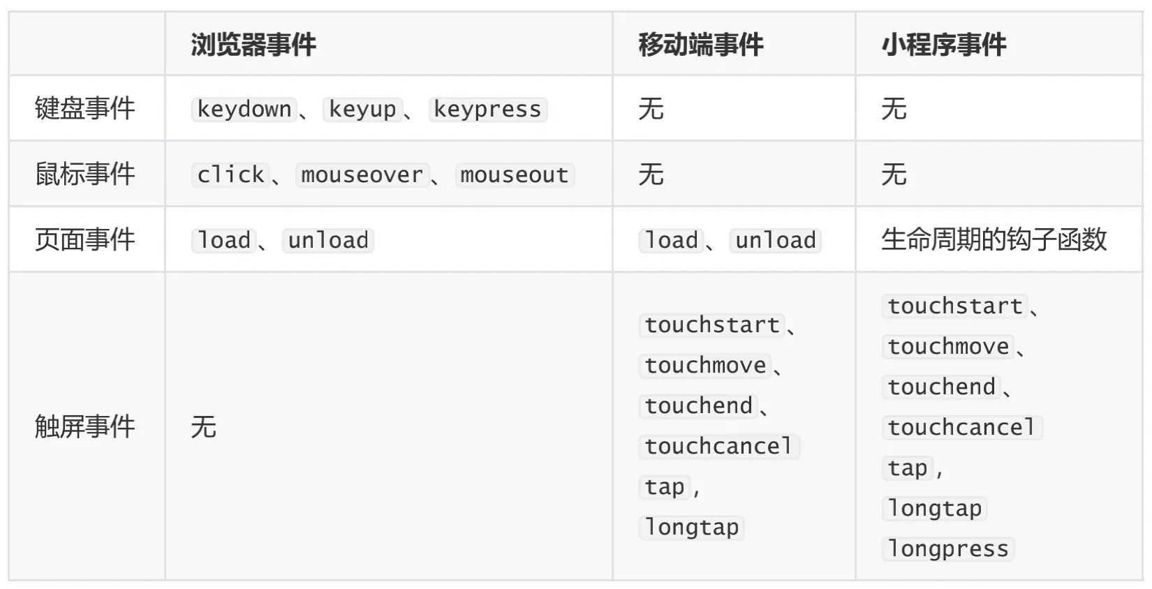 type ,事件类型,如 tap 、 longtap 、 longpress 等