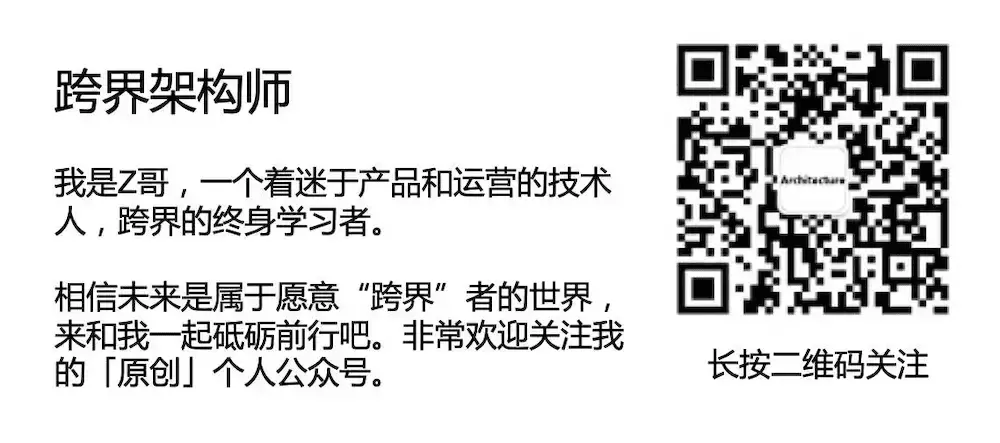 ▶ 关于作者:张帆(Zachary,个人微信号:Zachary-ZF)。坚持用心打磨每一篇高质量原创。本文首发于公众号:「跨界架构师」(ID:Zachary_ZF)。