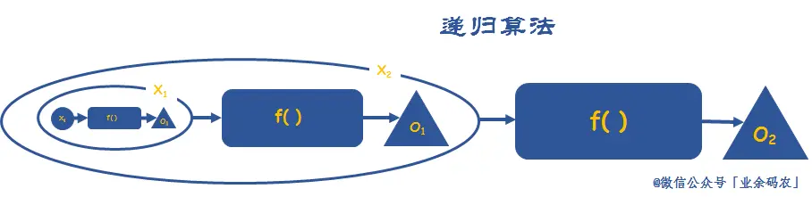 递归算法的图解可如下图。很明显,递归思想其实就是一个套娃过程。一般官方都是严禁套娃行为的。所以在使用时一定要明确「套娃」举动的停止条件,及时止损。