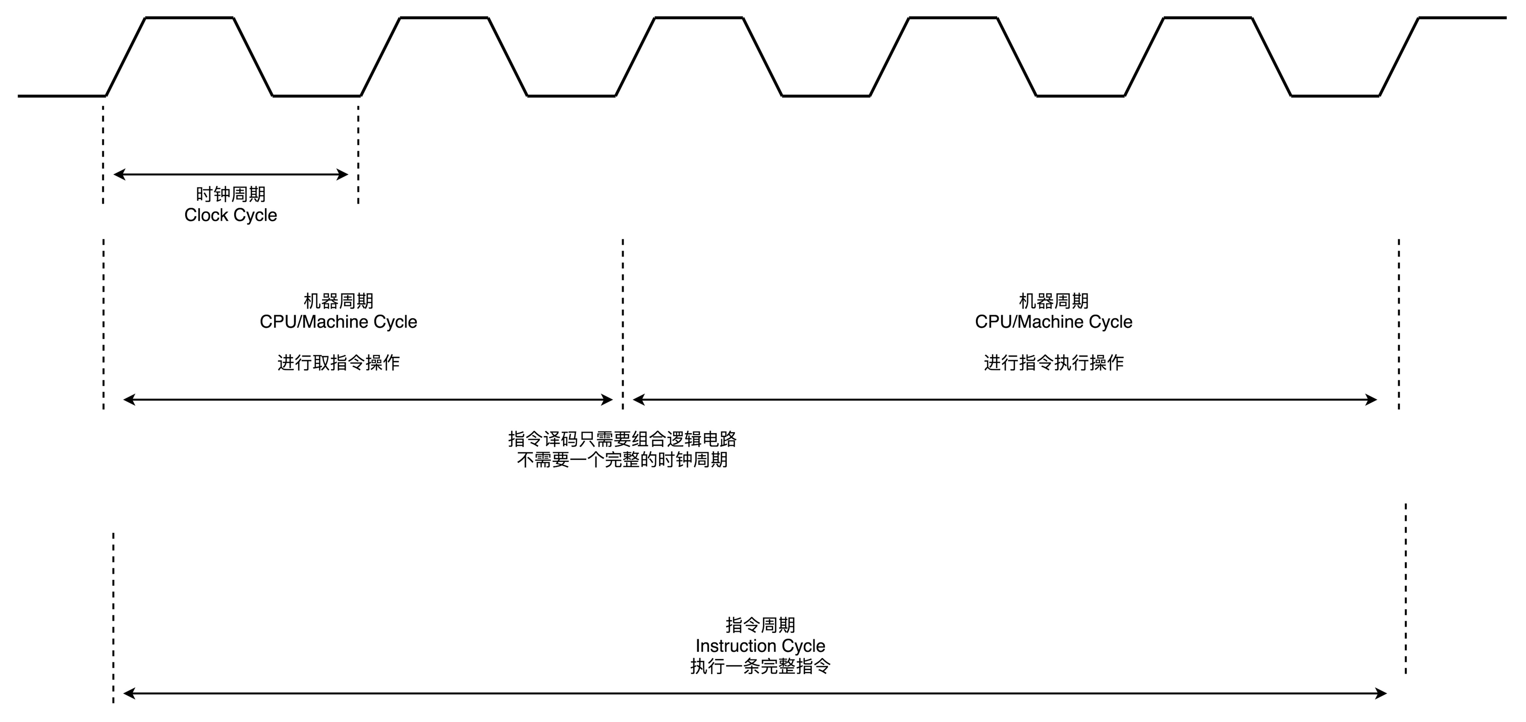 指令周期,CPU 周期,时钟周期的关系: