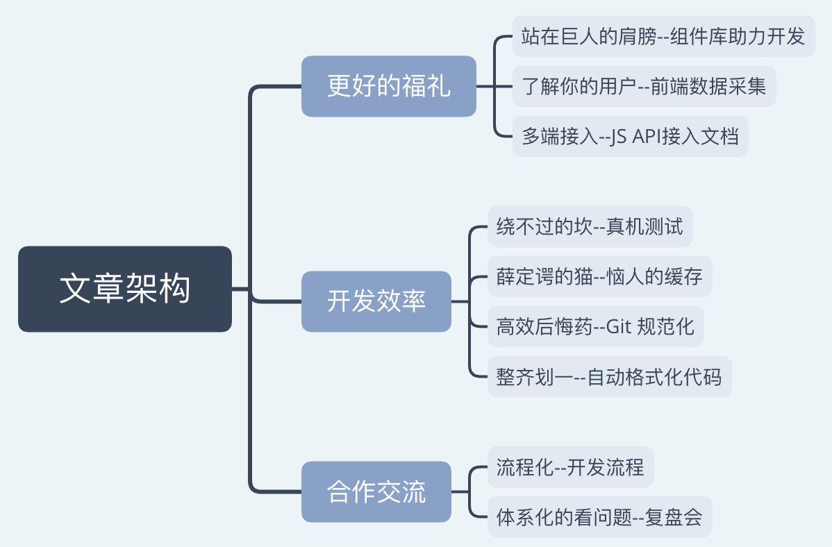 每当一个大的需求上线,项目经理都会组织复盘会,按照项目开发的整个流程,从各个协作方的角度复盘这次需求完成的收获和不足,并形成了前端与产研协作机制规范的文档。