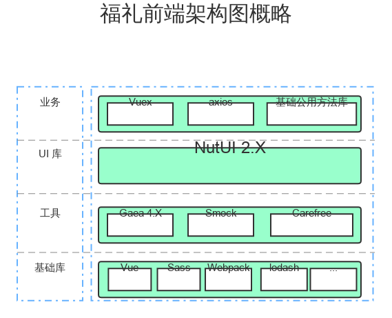 福礼项目自 18 年立项以来一直使用 Vue 技术栈,使用了团队自行开发的 Gaea 构建工具和 NutUI 组件库,此外引入了 Carefree,SMock,Vuex 等。