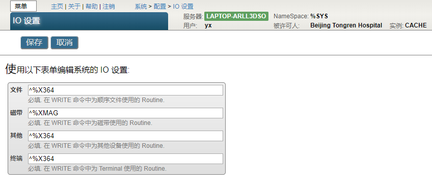 - 进入管理门户,选择[主页]>[配置]>[设备设置]>[IO设置]。查看和编辑“文件”、“磁带”、“其他”或“终端助记空间”设置。