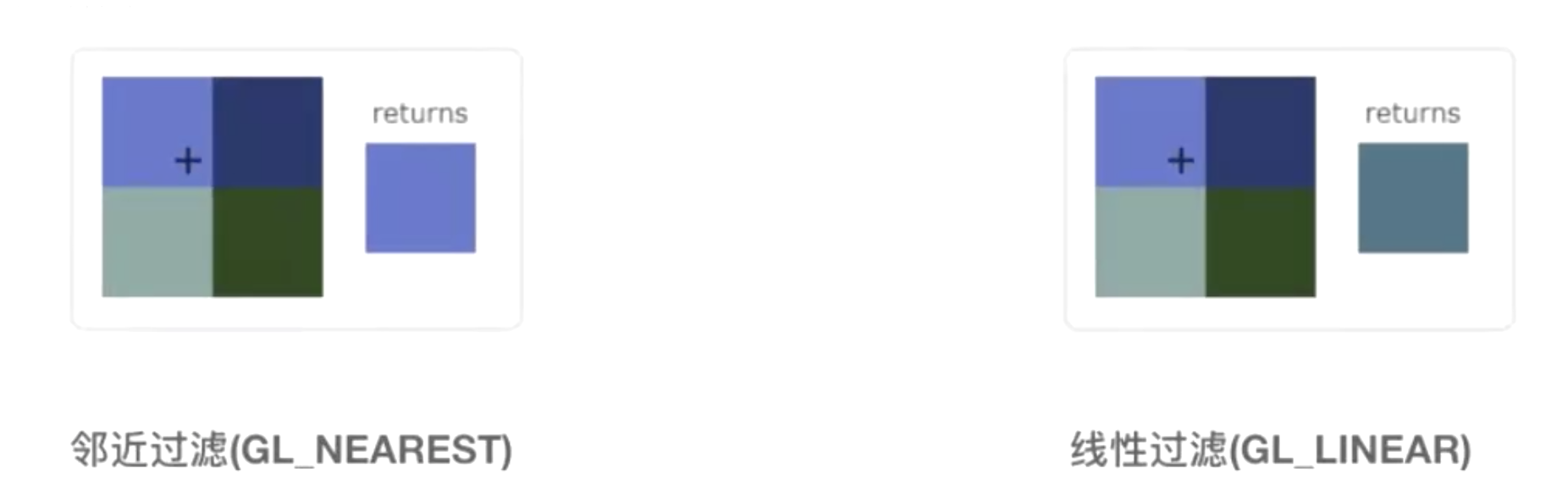 glTexParameteri(GL_TEXTURE_2D,GL_TEXTURE_MIN_FILTER,GL_NEAREST); //纹理缩小时,使⽤邻近过滤
