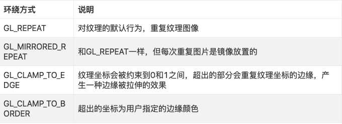 // GL_CLAMP_TO_BORDER:在纹理理坐标在0.0到1.0范围之外的只使⽤边界纹理单元。边界纹理单元是作为围绕基本图像的额外的行和列,并与基本纹理图像⼀一起加载的。