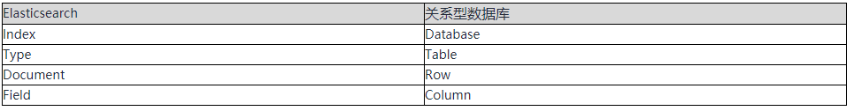 我们先来看一下Elasticsearch中的概念与关系型数据库之间的一种对照关系: