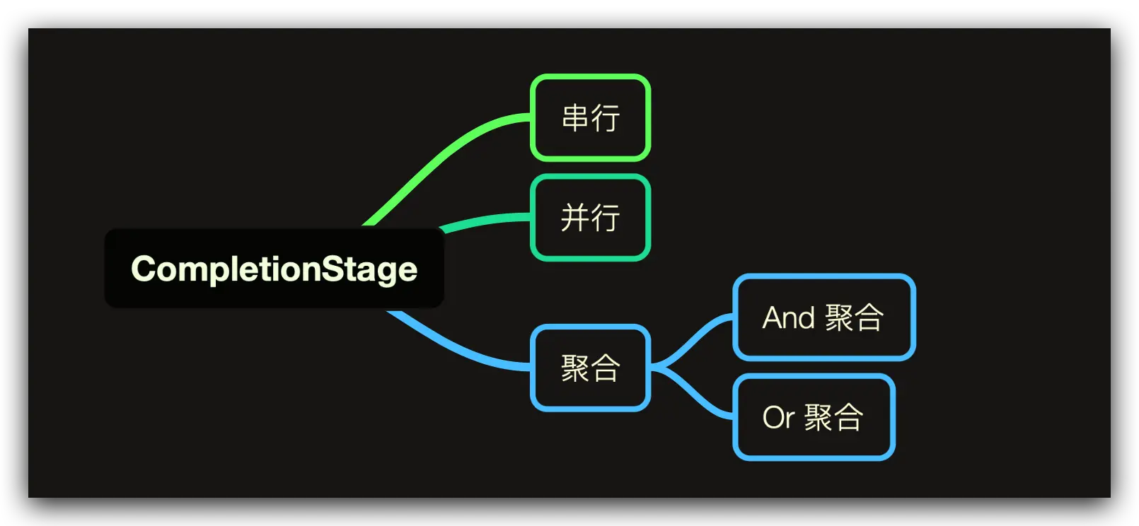 所以,CompletionStage 接口的作用就做了这点事,所有函数都用于描述任务的时序关系,总结起来就是这个样子: