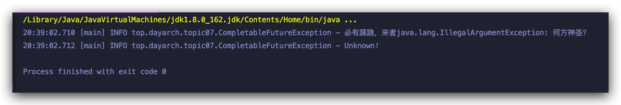 exceptionally 就相当于 catch,出现异常,将会跳过 thenApply 的后续操作,直接捕获异常,进行一场处理