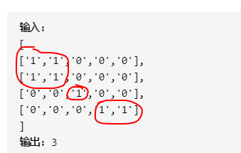 我的解题:这个二维数组中,有多少个1组成的独立小模块,每个独立小模块的上下左右只能是0.