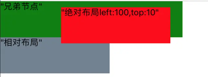 - absolute:绝对布局,布局时不管兄弟节点,直接针对父节点布局。